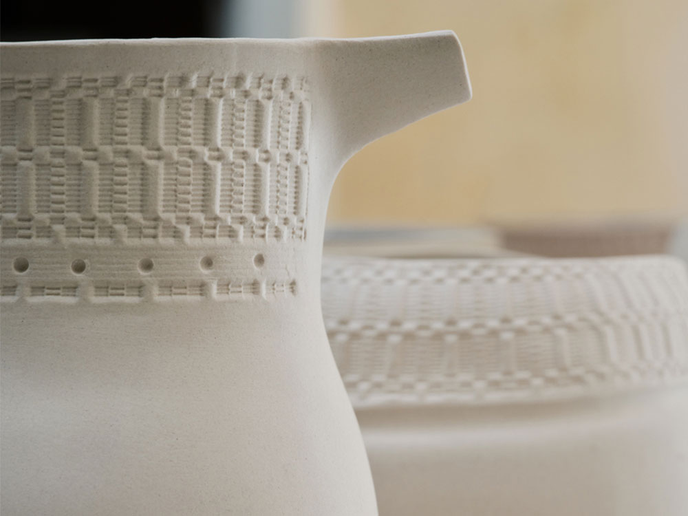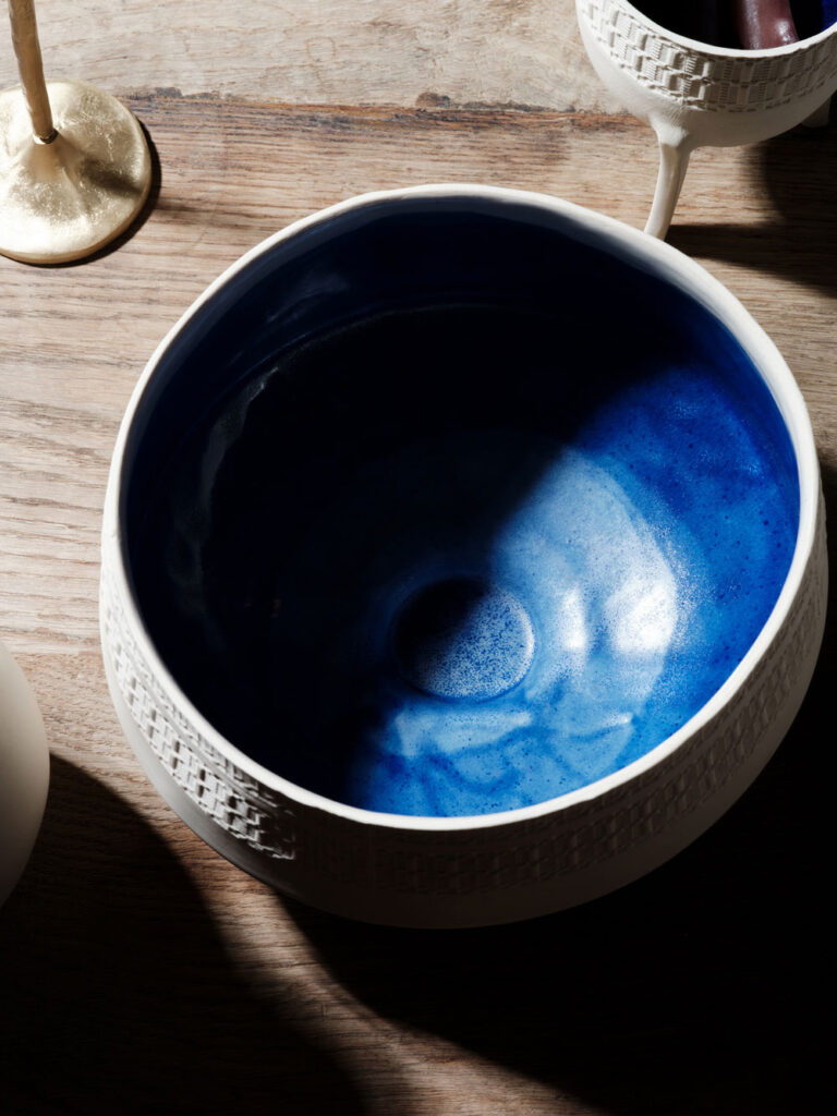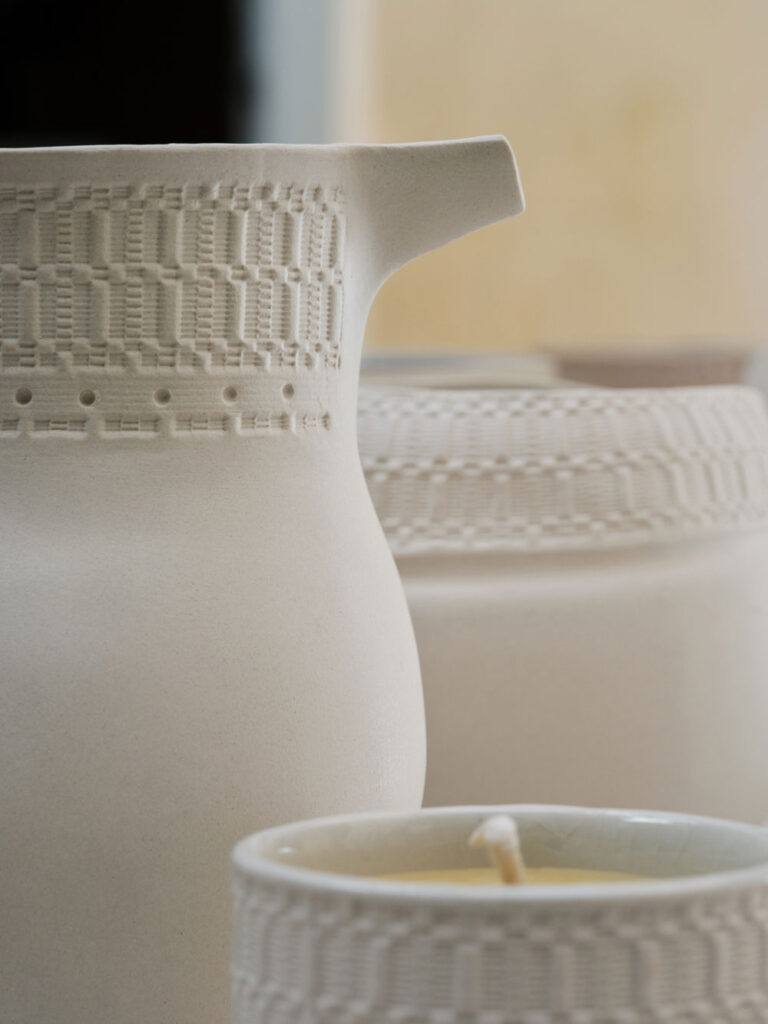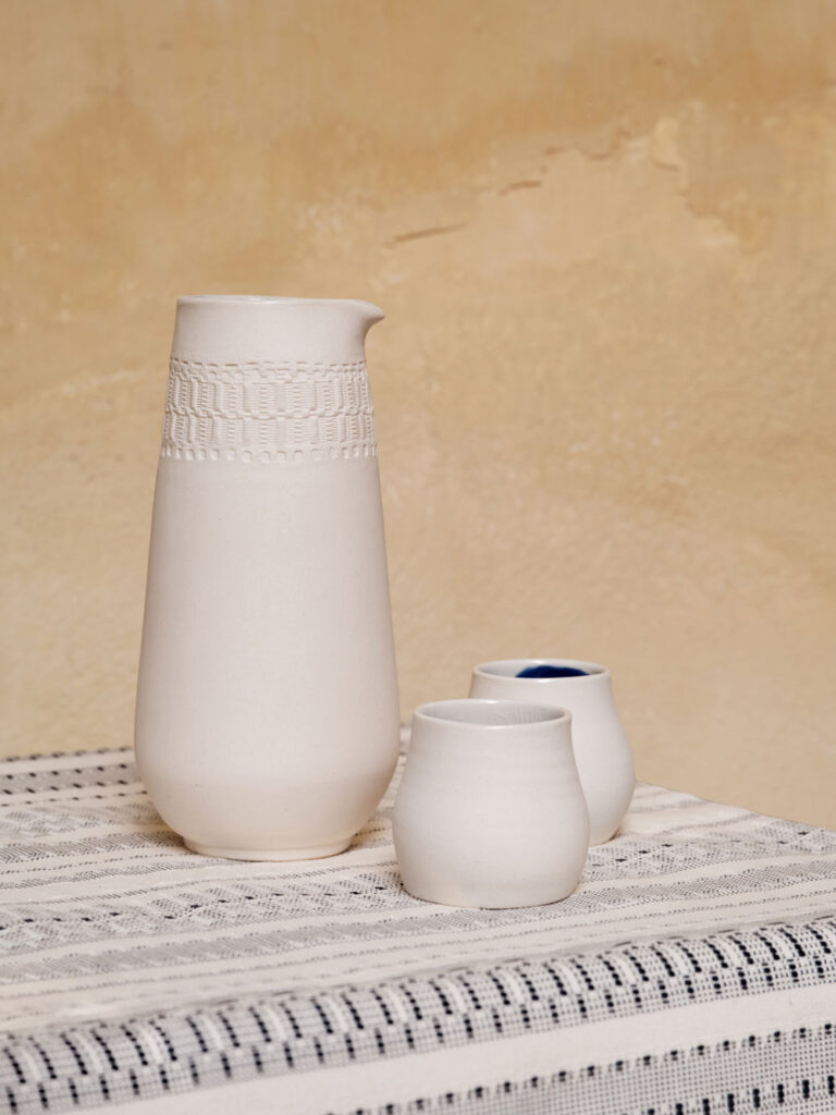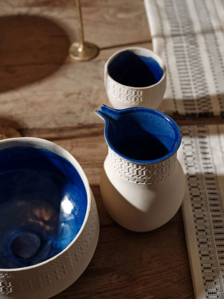Mirka Drapaniotou maintains a longstanding collaboration with ZEUS+ΔIONE, grounded in a shared commitment to Greek craftsmanship, ancestral techniques, and contemporary design. Her ceramic pieces for the brand’s φῐλοξενῐᾱ homeware line embody the quiet dialogue between heritage and modernity—evoking Cycladic light, elemental textures, and timeless forms. Working closely with designer Marios Schwab, Drapaniotou contributes sculptural objects shaped in clay and porcelain, subtly glazed and engraved with Z+Δ’s signature Spathoto motif. This ongoing partnership reflects a mutual reverence for rooted aesthetics, meaningful making, and the enduring spirit of Greek hospitality.